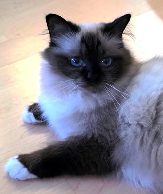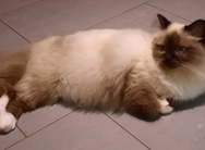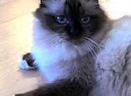 Haiba ist eine verschmuste Katze, die sich am liebsten zum Schlafen eng an ihre Mutter Jessie kuschelt und sie nuckelt auch mit Vorliebe im Fell von Jessie. Wenn Jessie mal nicht herhalten will, macht sie das auch bei ihrer Halbschwester Holly und wenn gar nichts klappt, muss ein Kuschelkissen herhalten.
