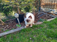 Haiba war von den zwei Würfen mit acht Kitten, die wir gleichzeitig hatten, die letzte, die mit selber Essen begonnen hat. Aber dann hat sie gemerkt wie gut das ist und nun ist sie die stürmischste, wenn es zu essen gibt. Sie kann nicht warten bis alle Futternäpfe gefüllt sind und fällt regelrecht über den Futternapf her. Manchmal springt sie mir sogar beim Hinstellen in den Napf, bevor er am Boden steht.