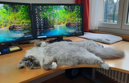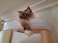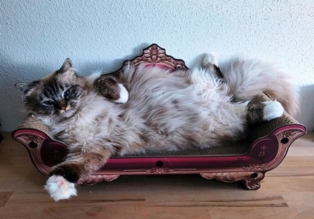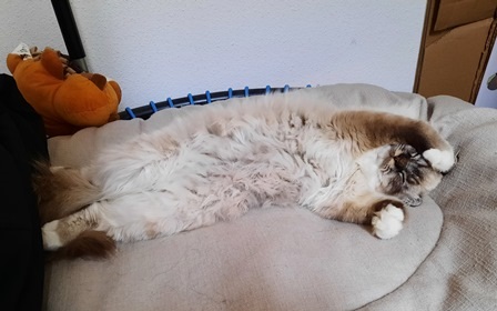 Zafar ist unser Schmusebär und eher ein gemütlicher Kater. Aber er kann auch aufdrehen und dann geht die Post ab. Er war vom ersten Tag an selbstsicher, neugierig, furchtlos und hat sich mit seinem Verhalten ganz schnell in unserer Katzengruppe super gut integriert. Die anderen Katzen zeigten sehr schnell, dass sie ihn aufgenommen haben.
