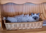 Wenn er Kuschelzeit will, oder Hunger hat, dann kann er mit einem kläglichen Miauen klar und deutlich zeigen, was er möchte. Gibt man ihm das was er will, kann sein Schnurren nichts mehr übertreffen. Wenn er kuscheln will, dann in vollen Zügen und sehr hingebungsvoll.