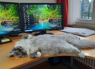 Auch unsere Hündin hat ihn sofort interessiert und da ist das Eis sehr schnell gebrochen. Zafar macht keinen Unterschied ob ihm die Hündin, oder eine andere Katze begegnet und sein Verhalten ist in allem sehr selbstsicher.